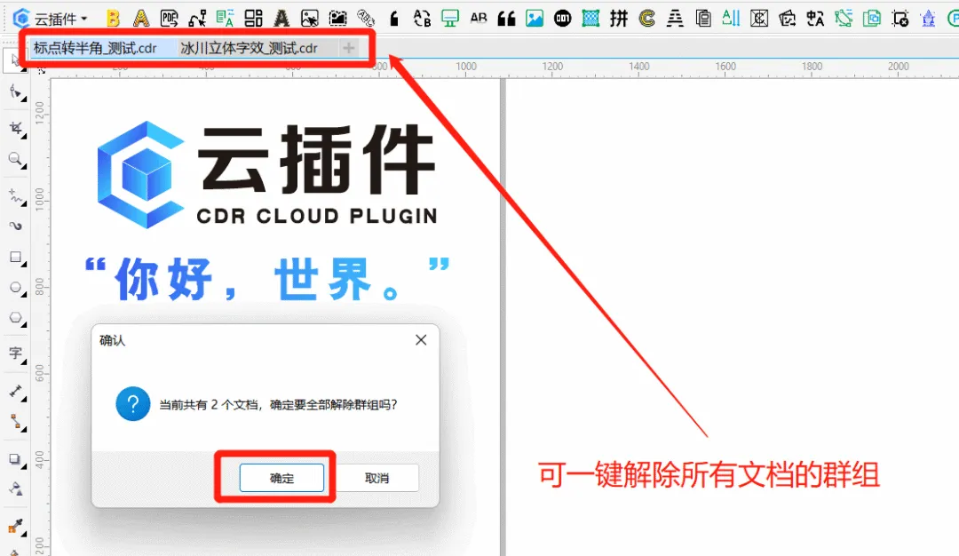 功能简介:所有文档解除群组插件可一键解除当前CDR中所有文档的群组关系,方便快捷。