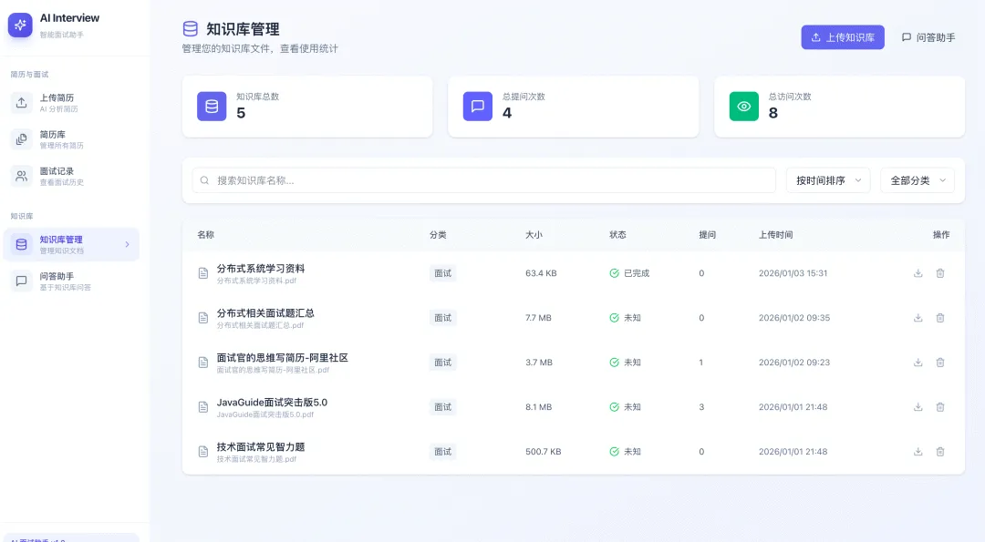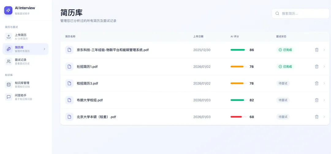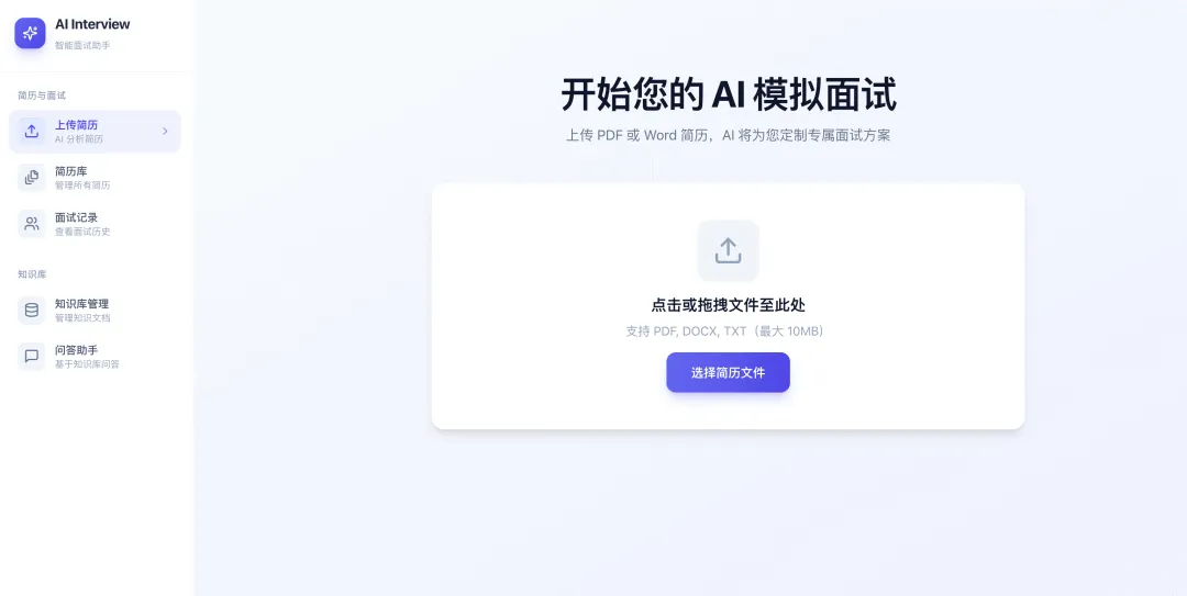 这套工程把简历分析、模拟面试和知识库问答放在同一产品里,面向求职者与招聘侧都能讲清价值。小新读下来觉得,它更像「能写进项目经历」的完整链路,而不是零散调接口的玩具。