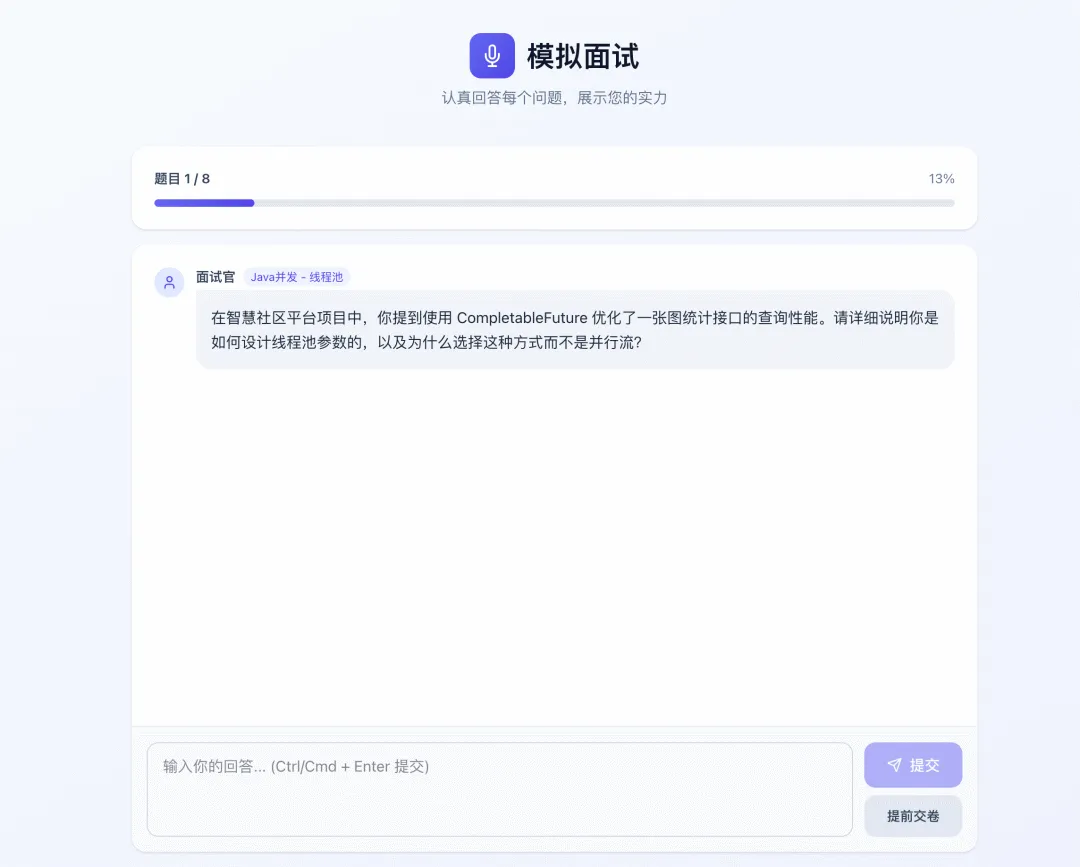 春招季一到,小新既要改简历又要模拟面试,却总觉得自己在「盲练」:不知道薄弱点在哪,也不知道面试官会从哪条线追问。他想要一套能落地跑起来的样本,最好把大模型、向量检索和异步任务串清楚,而不是只看一段演示视频。