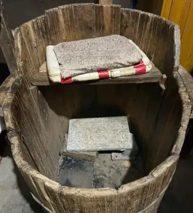 这个木桶看着粗糙,南方人一眼就会认出来是火桶,冬天炭火往里头一装,块石板或铁片镇着,面上一层软垫,晚上断电没空调,屋里四五个人抢着凑一块烤腿,“坐火桶别忘了翻翻炭,不然烧糊了褥子”,奶奶总能顺手把红薯藏在灰底,等作业快写完一掏出来甜软烫嘴,小时候家里谁能抢到火桶坐俨然小霸王,天气再冷也不带打哆嗦的,当时没条件全靠这点办法暖和,等到现在家家空调地暖,火桶反倒被撂进仓库,柜顶一落灰就是好多年,只剩下一嗓子温度留着回味。