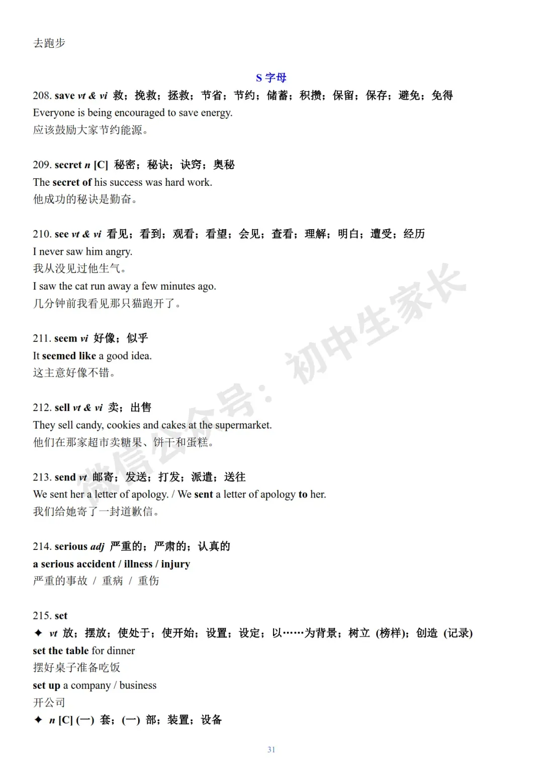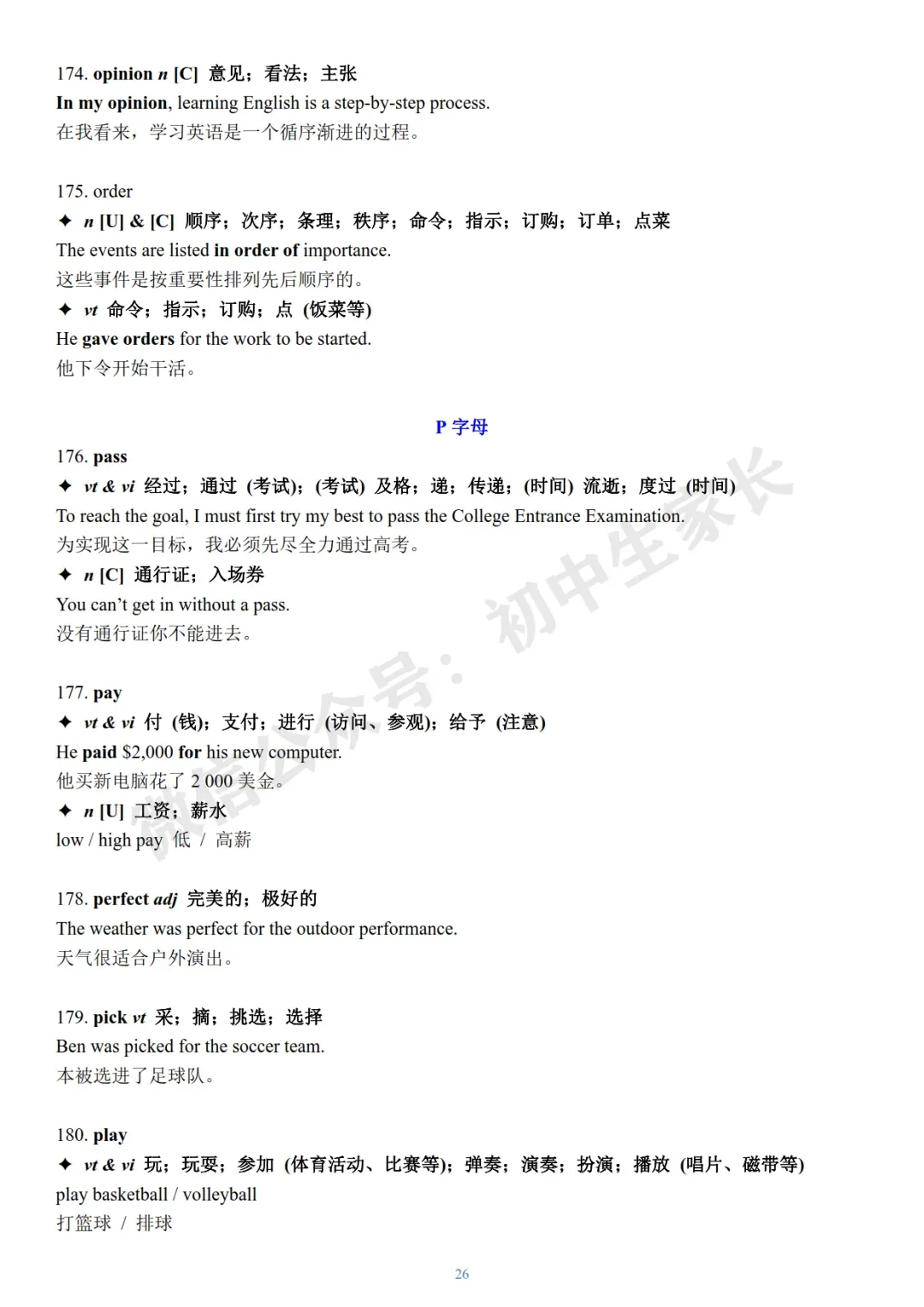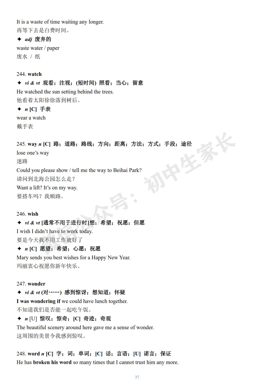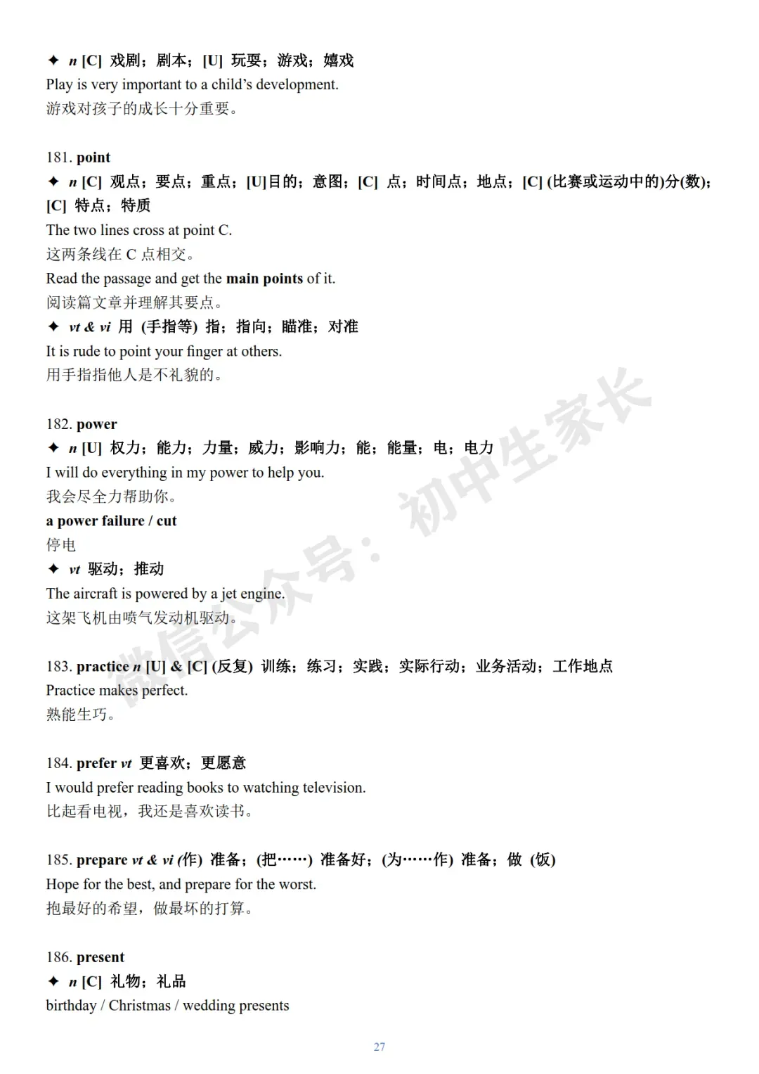 今天老师给大家整理了:2026年中考英语冲刺必背核心词+例句(可打印)。