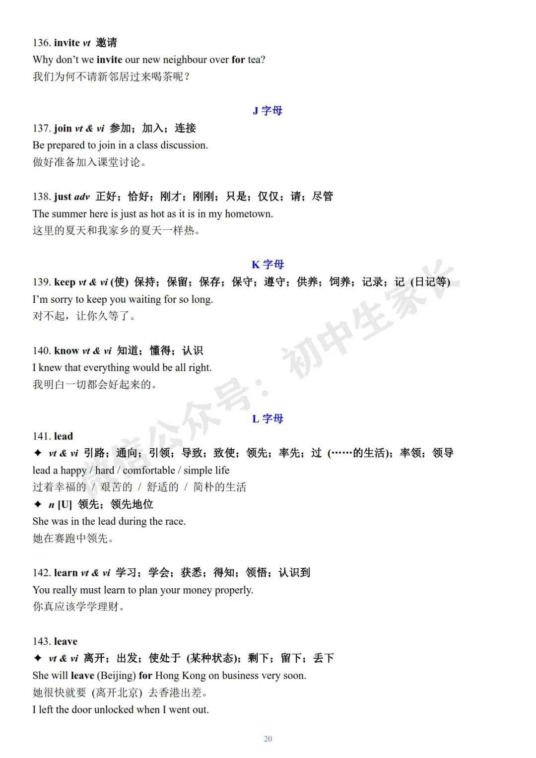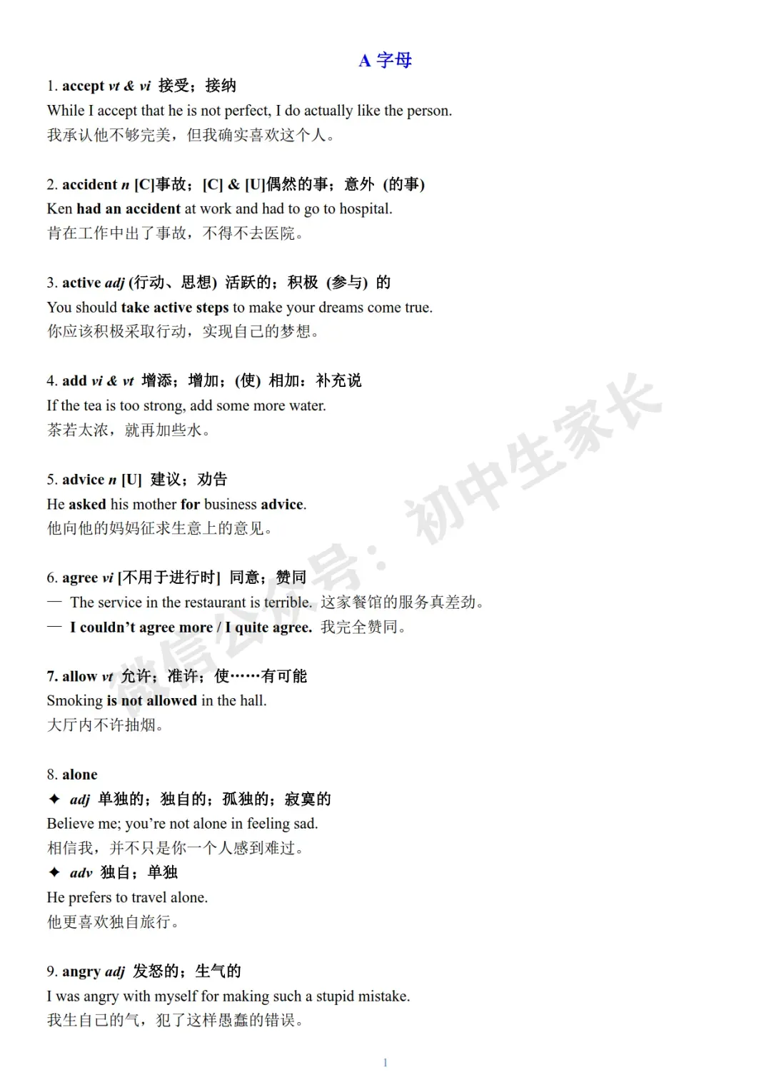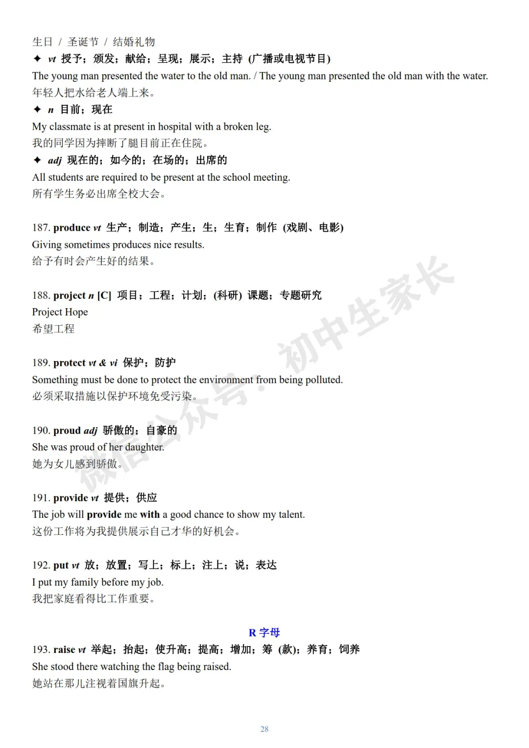 今天老师给大家整理了:2026年中考英语冲刺必背核心词+例句(可打印)。
