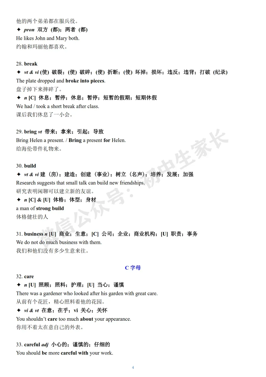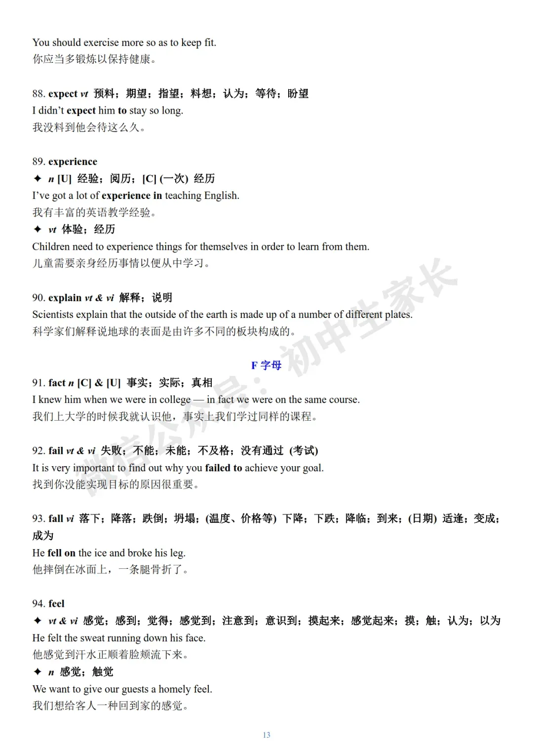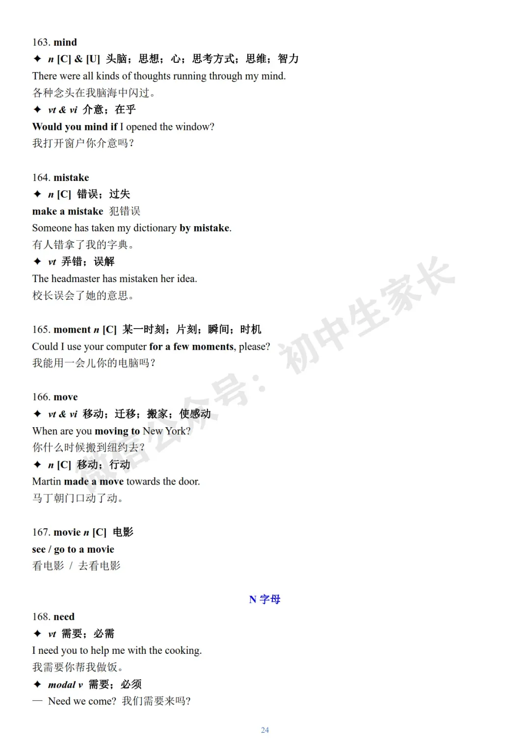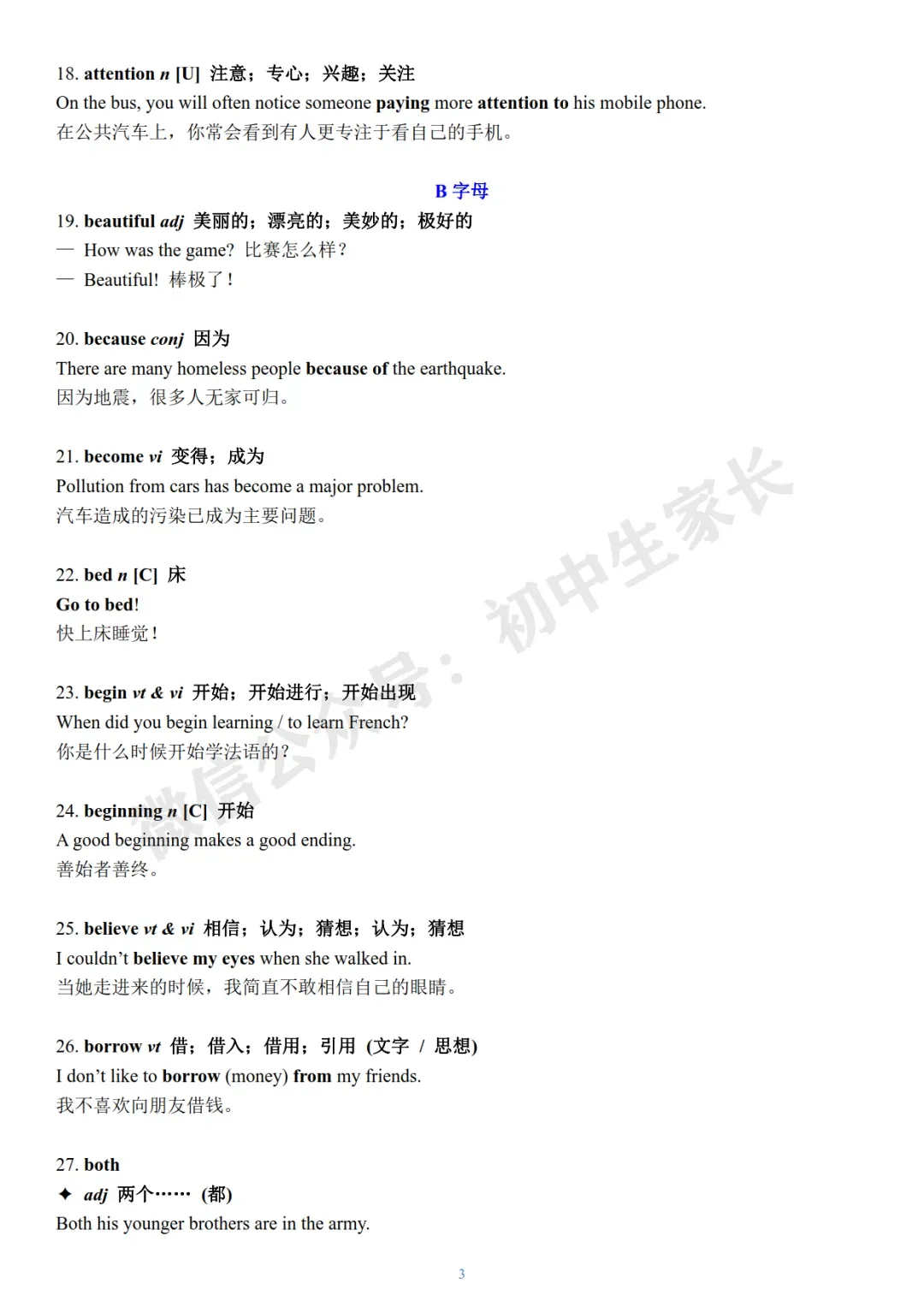 今天老师给大家整理了:2026年中考英语冲刺必背核心词+例句(可打印)。