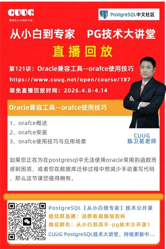 欢迎继续关注PostgreSQL技术大讲堂,