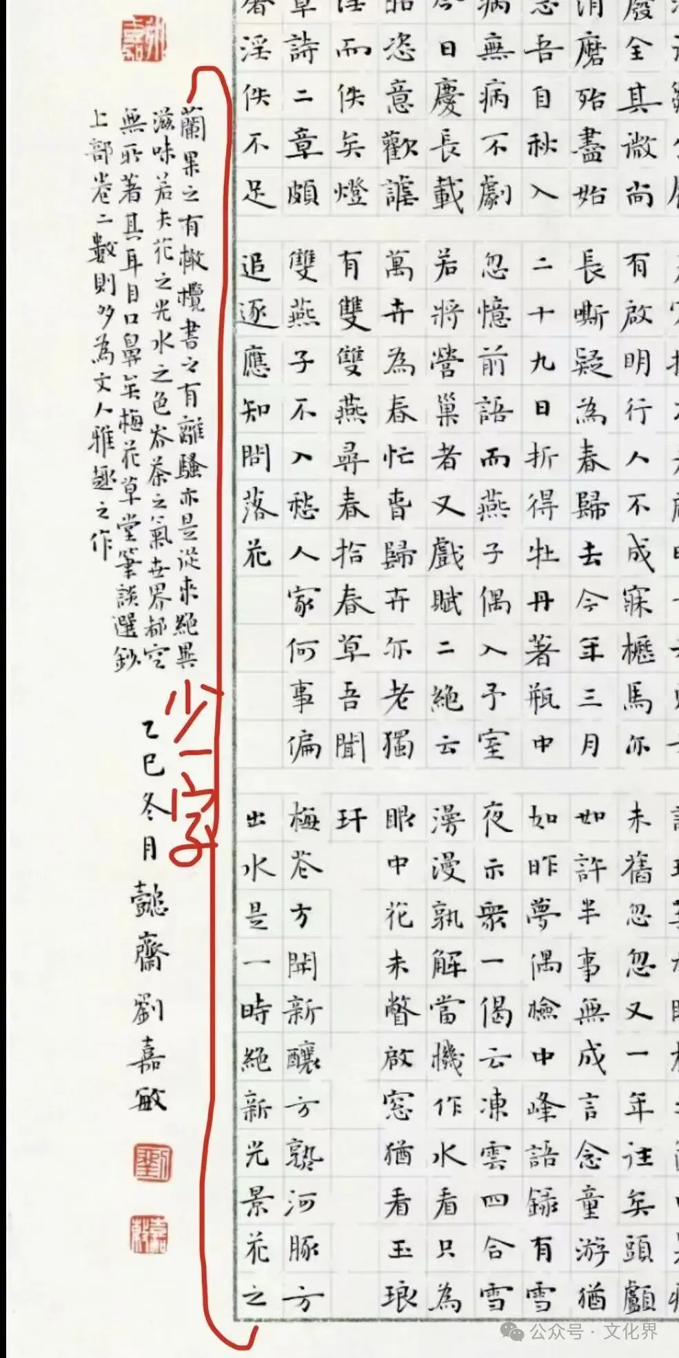 一、特等奖袁后青草书作品中,正文两处疑问“簷“、”横“系版本差异,文字无问题。落款两处确实存在文义上的重复,最后一行,“录”与“书”重复,“乙巳”与“年”重复。