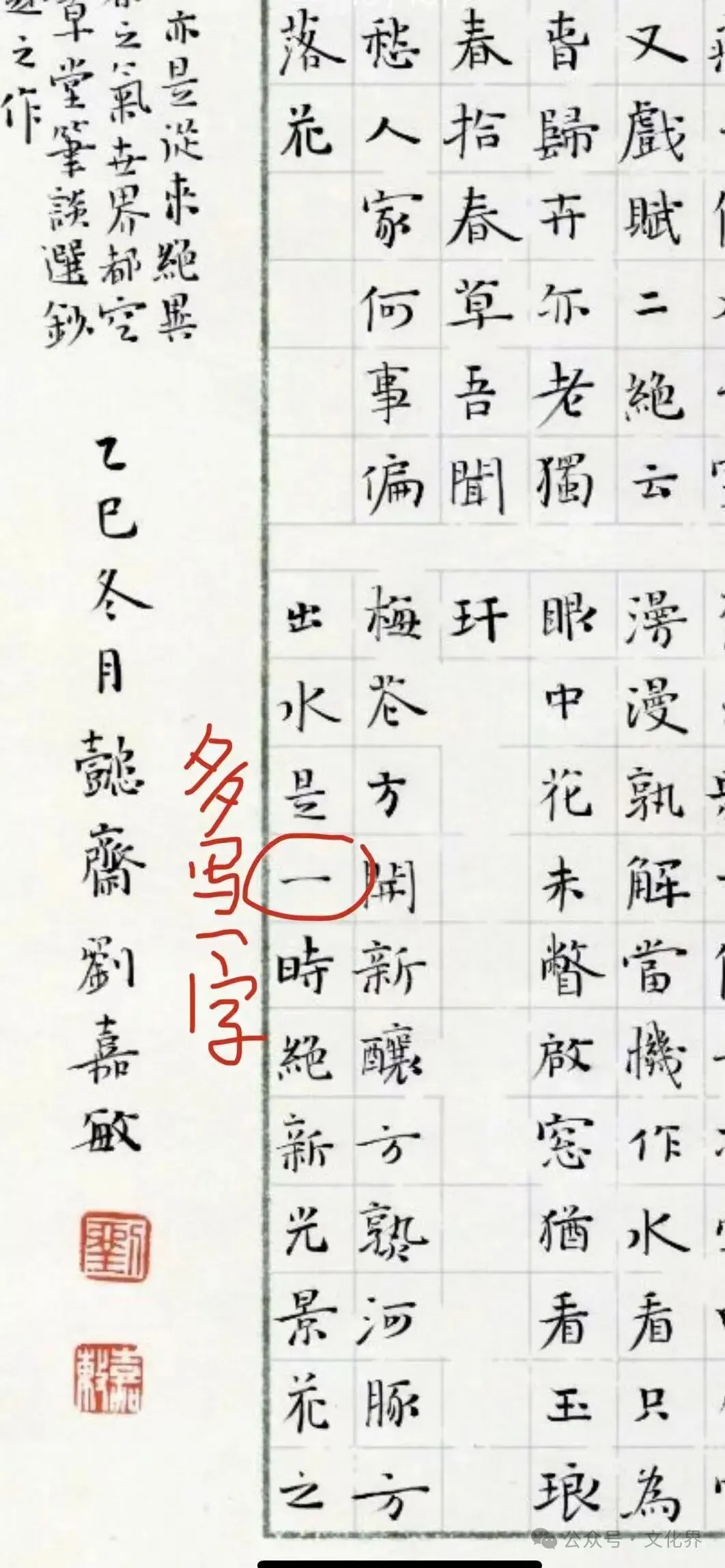 六、铜奖葛建刚楷书作品中,漏“易”字,“佳”字无错,后两处与我搜找的版本有出入,可能有误,未能确定。
