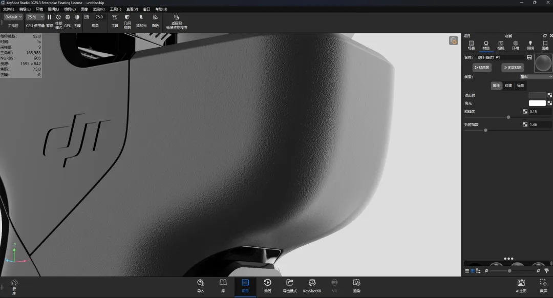 功能图示:犀牛模型直接对接进入KeyShot中进行渲染。