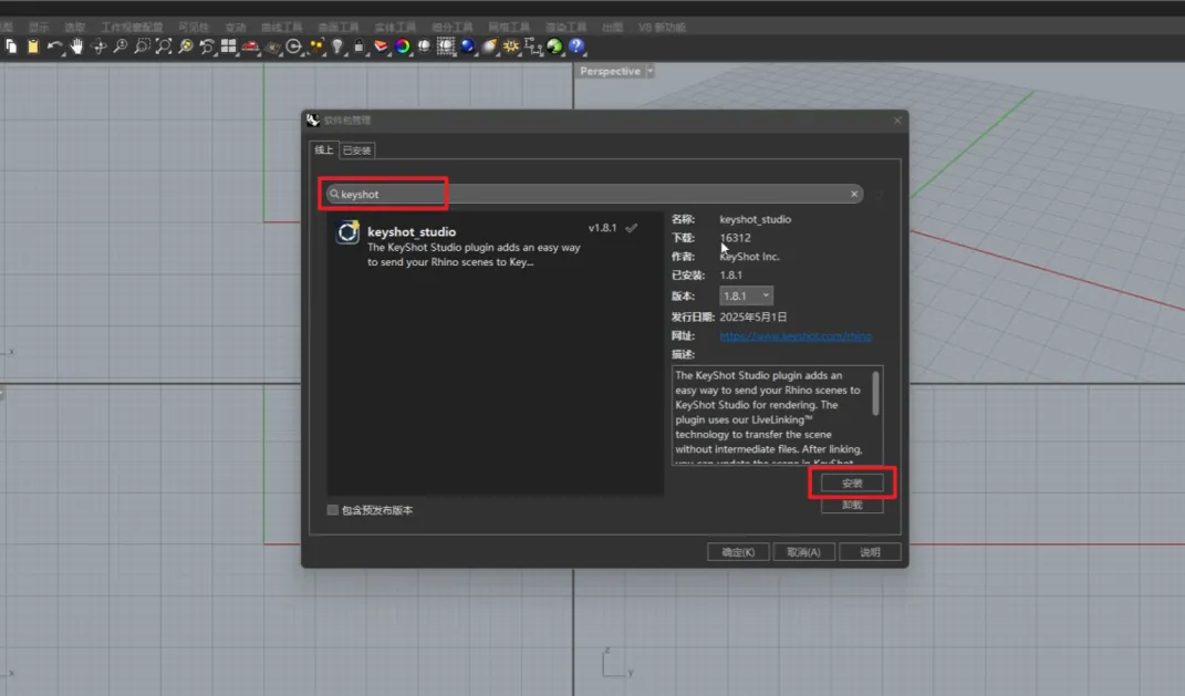 需要犀牛和 KeyShot 的安装路径位于默认路径,即使修改安装位置也只能改盘符,不要修改路径。