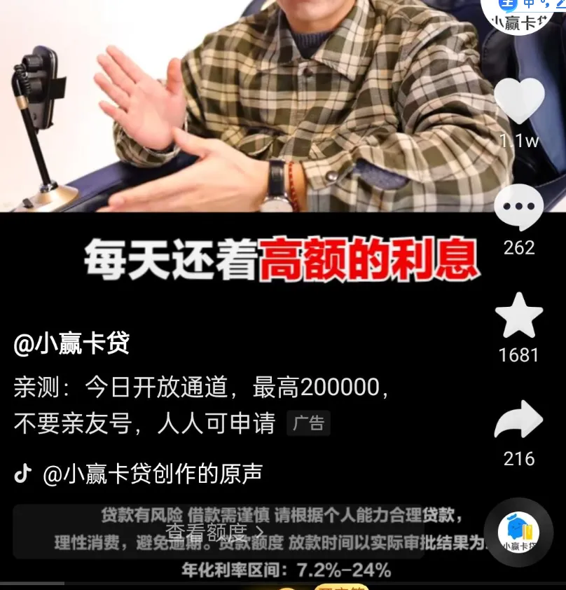 早上打开外卖 App 想点个包子豆浆,首页弹窗直接弹出来:「你有 3 万备用金待领取,日息低至万 3」; 中午打车上班,支付完车费,页面底部又冒出来一行字:「急用钱?一键借款最快 1 分钟到账」; 晚上刷短视频放松,刷着刷着,一条广告跳出来:「凭身份证就能借 5 万,无抵押无担保」; 就连你用修图 AppP 个图,退出的时候都能收到推送:「本月生活费不够?来我们这借点」。