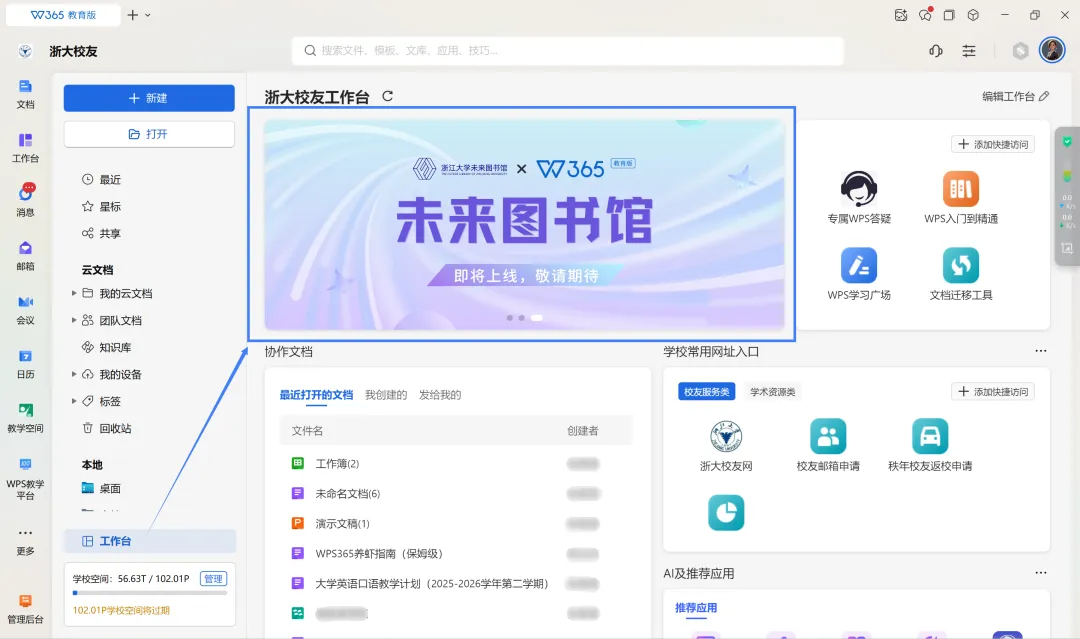 WPS 365与未来图书馆开放了互访入口,