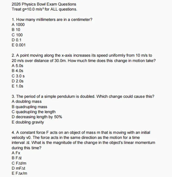 2026年物理碗考试3月17日结束,物理碗真题+答案解析电子版分享给大家!