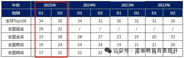 金奖:Division 1 24 分,Division 2 30 分
