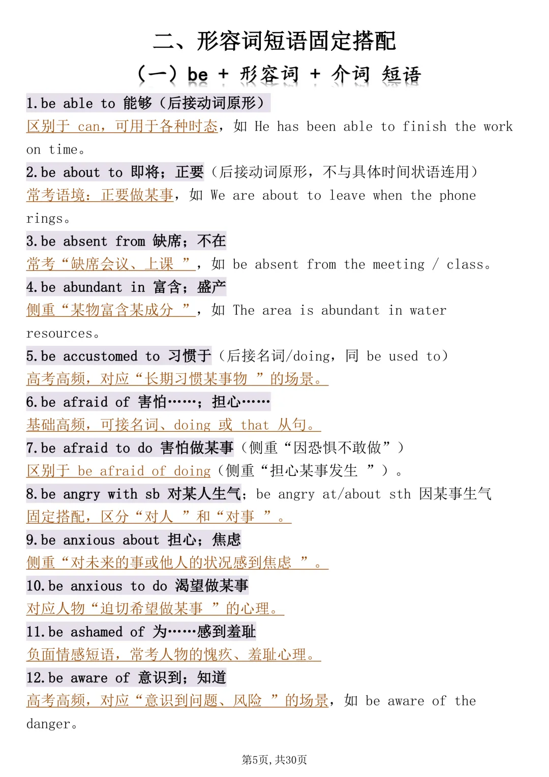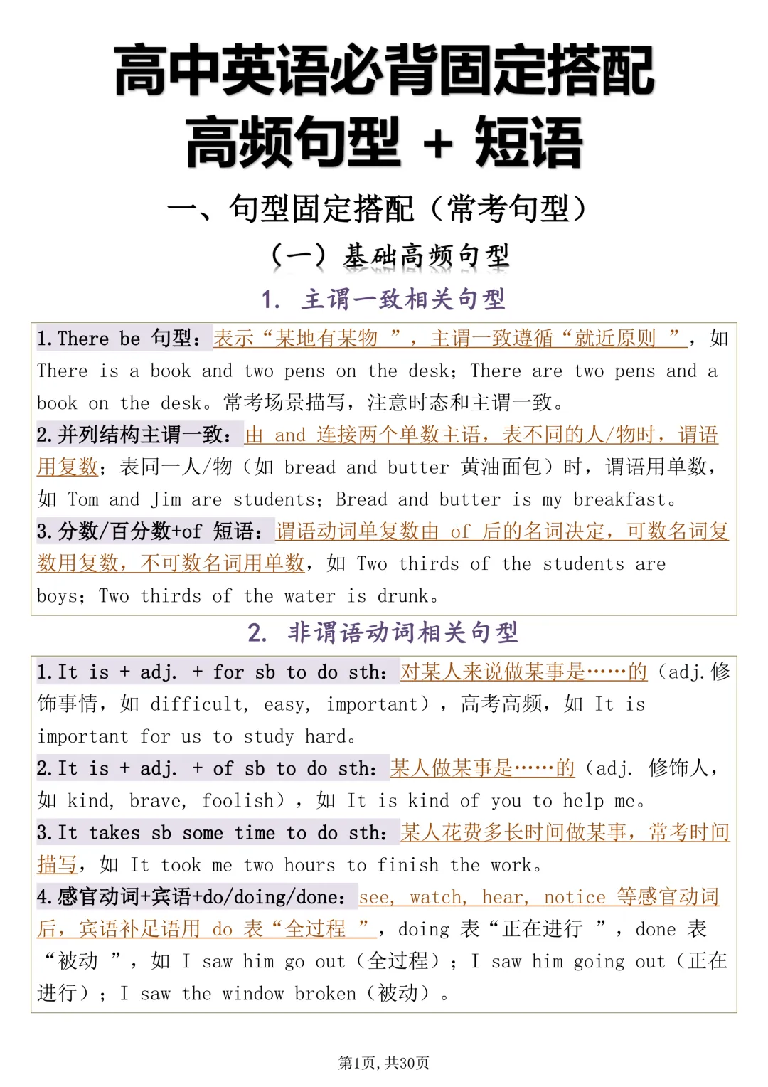可打印的【高中英语必背固定搭配高频句型 + 短语】快收藏! 本篇笔记总共30页,完整电子打印版获取方式,先点右下角的爱心推荐,点了爱心推荐之后,在下方公众号私信“获取资料”,即可领取完整版打印出来背诵↓↓↓
