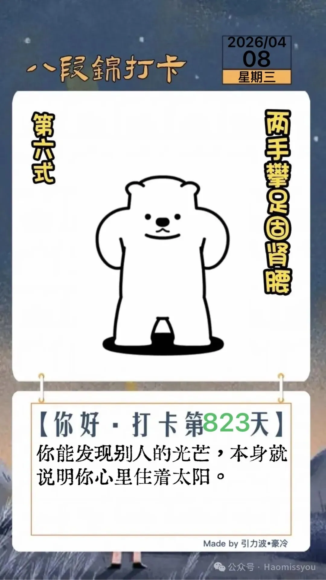 1. 练习八段锦,第 823 天。