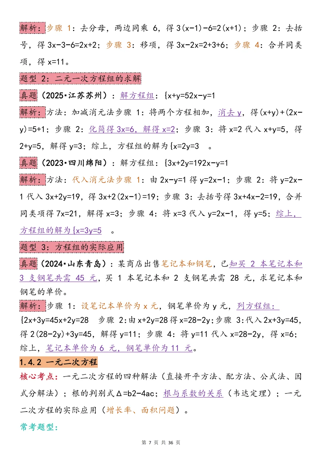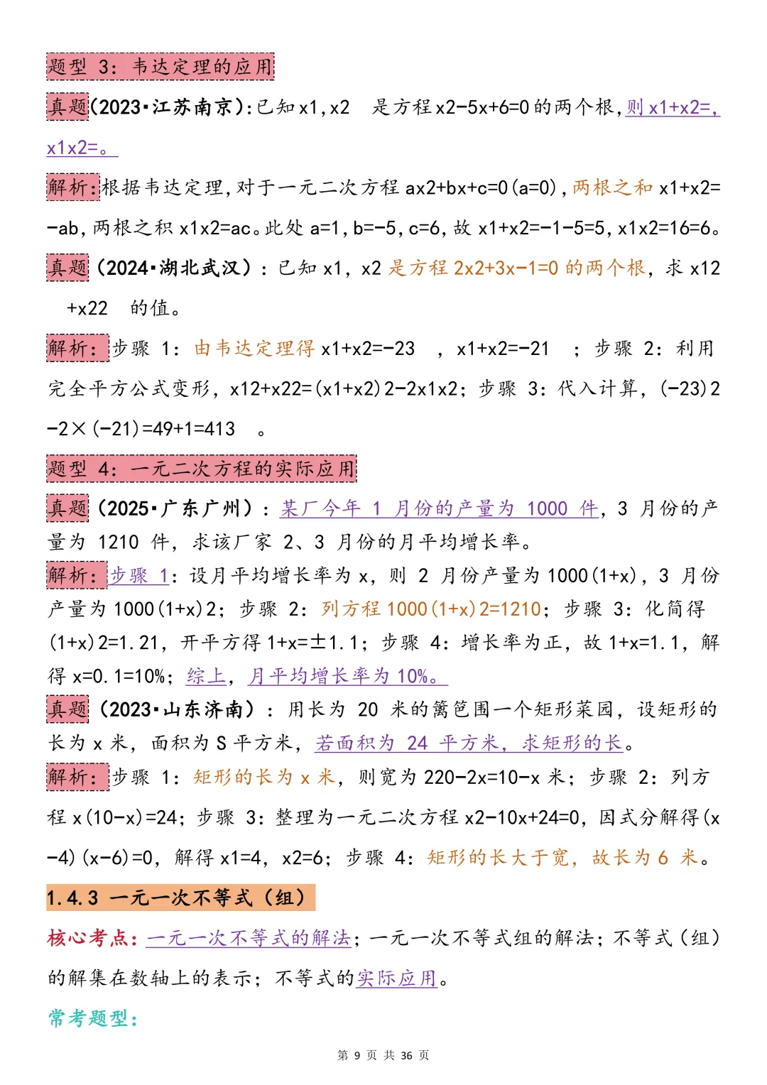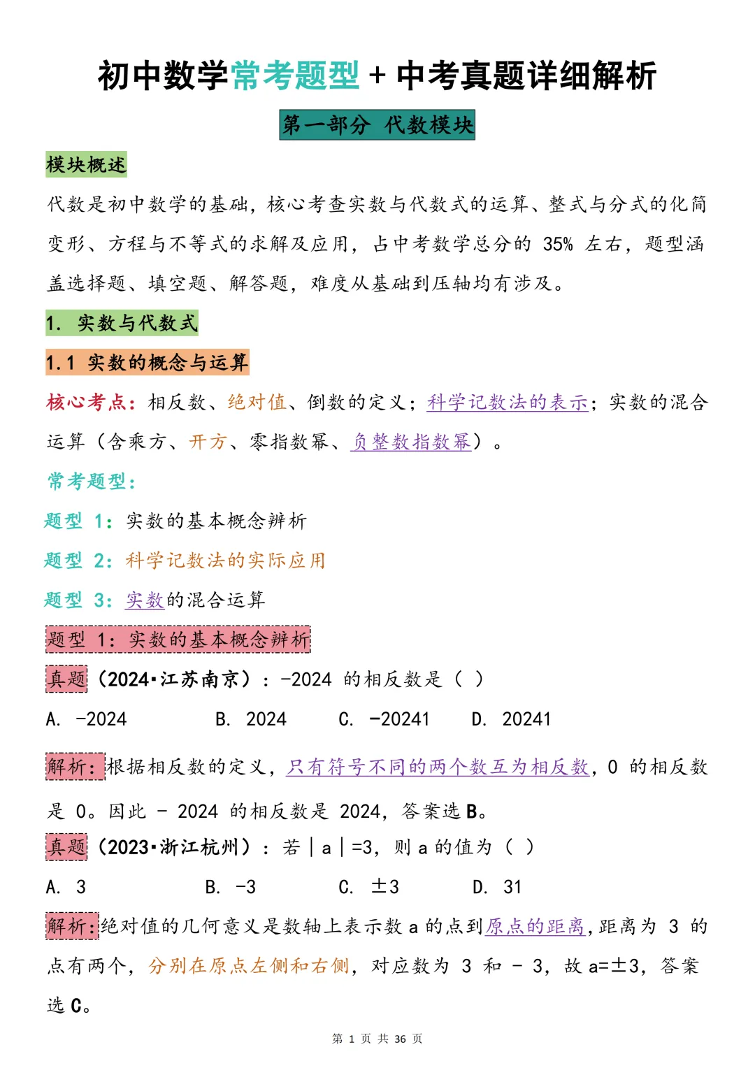 中考数学必背【常考题型+真题解析】,可打印 快收藏 中考数学提分有妙招,核心关键在 “常考题型”。真题的掌握是根基,尽管题型灵活多变,答题核心的本质始终不变。 今天给大家整理了中考必备的【中考数学最全常考题型+真题解析(全年级覆盖)】,不管题目如何变式,都能让表达更出彩,轻松拿下高分! 因篇幅有限,点击我的头像私信我回复 “资料获取” 就可以领取 word 电子版。以下是部分资料内容,完整高清版的发送私信即可。 受文章篇幅限制,仅能分享部分内容~ 领取方法: 1、先下方点👍“赞”➕♥“推荐,然后关注下方公众号 2、在对话框中回复“ 资料获取 ”即可获取完整电子版 更多资料及学习方法持续更新中……