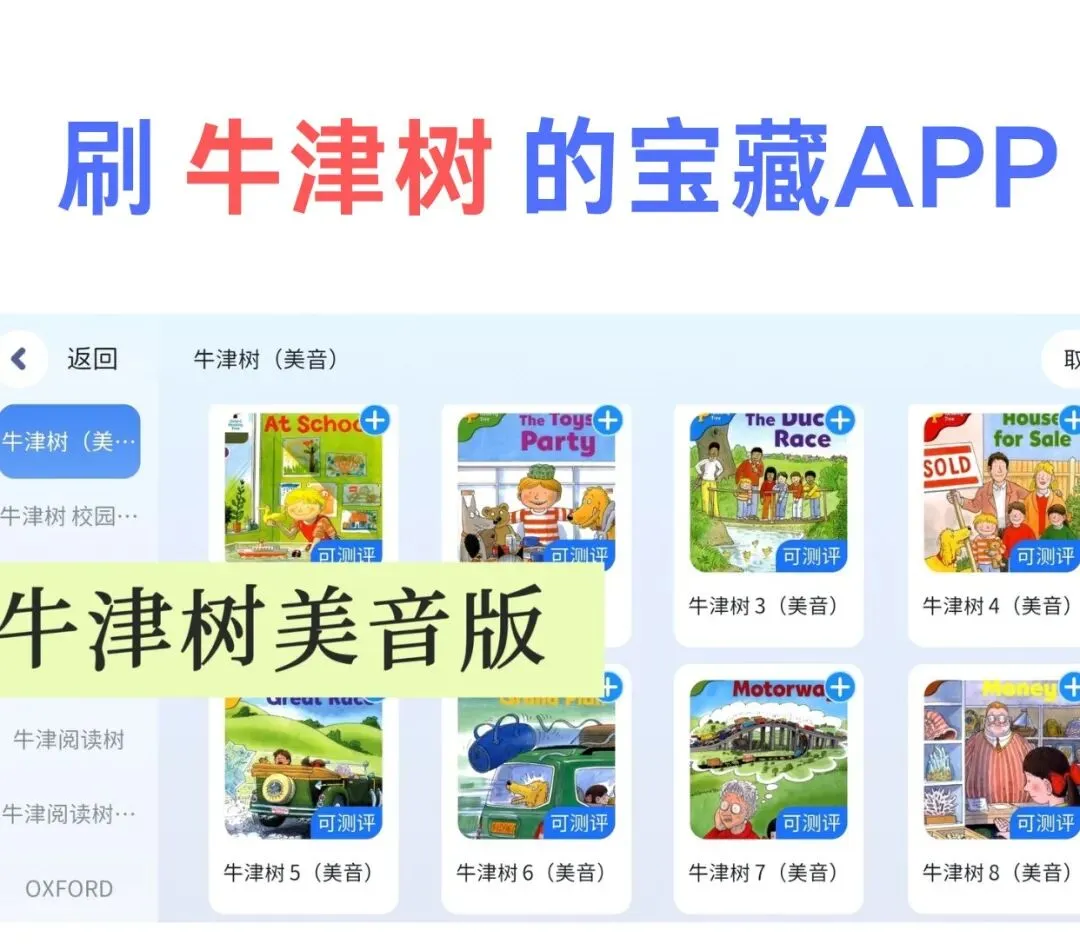 这个APP里呢?牛津树美音版、校园版、Tree Tops…… 所有版本全都有!