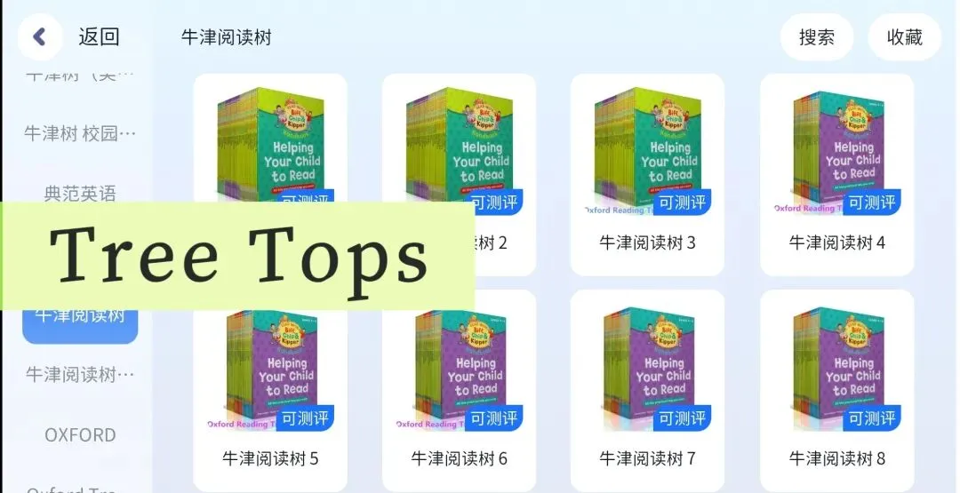 这个APP里除了牛津树,还有RAZ、海尼曼、红火箭、丽声、培生、攀登、I Can Read、兰登、学乐、黑布林、典范英语、美丽英文……