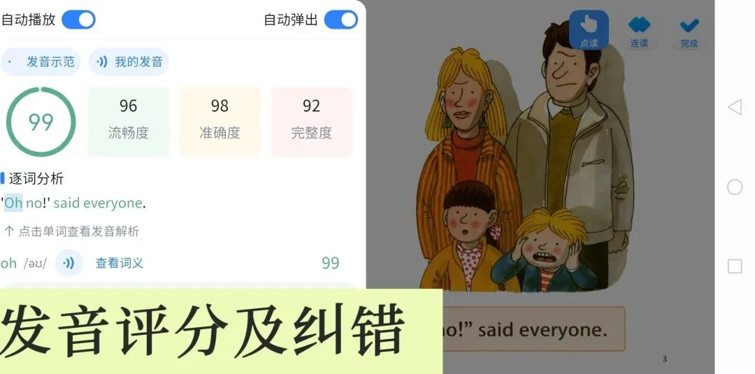 孩子跟读→AI实时评分→错误发音立刻标红纠正。