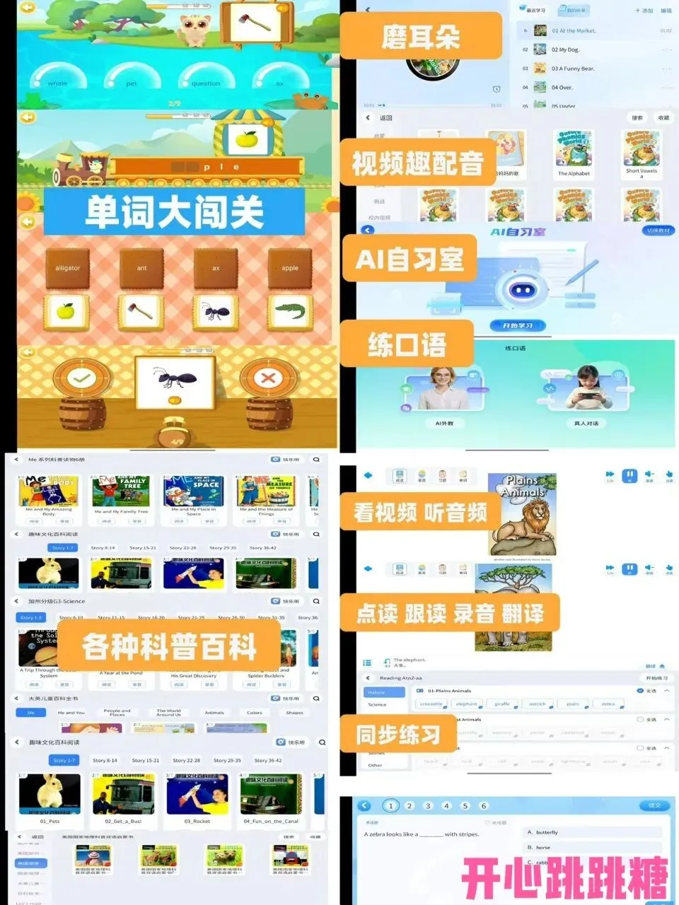 另外,还有磨耳朵、配套在线练习、背单词(带单词闯关游戏),一条龙服务。