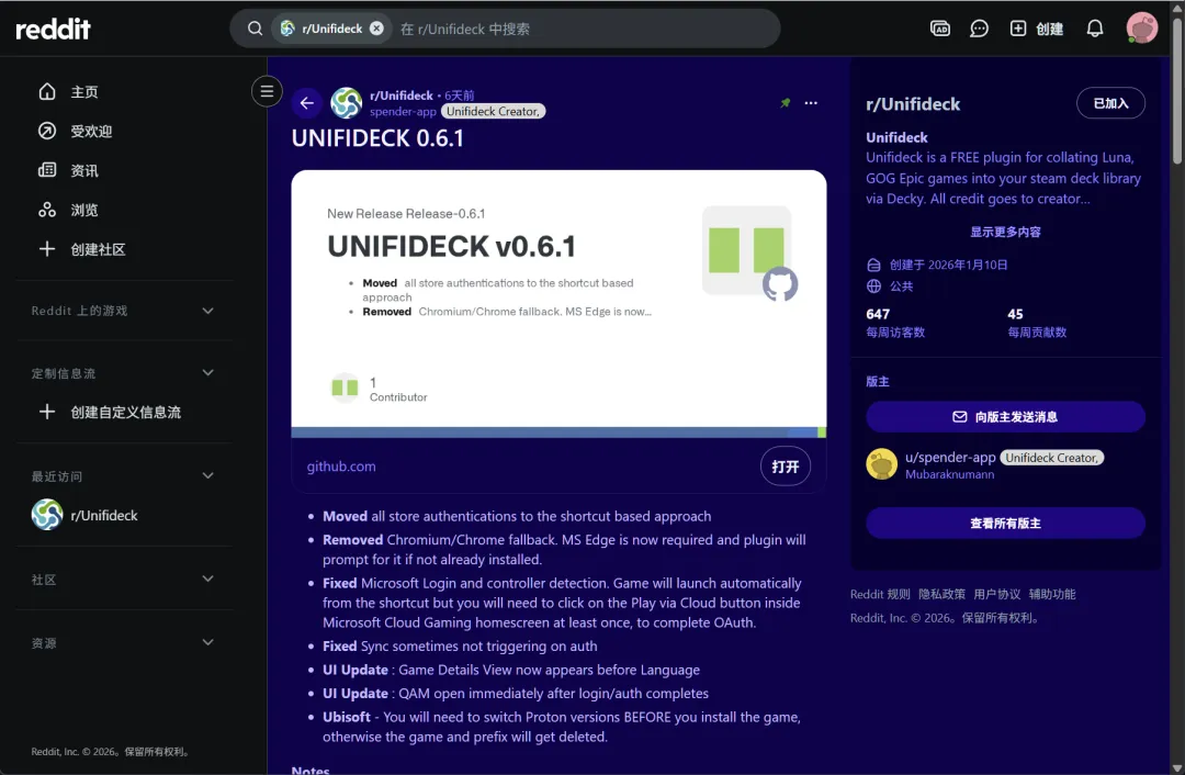 图源:reddit/reddit/r/Unifideck/登录修复