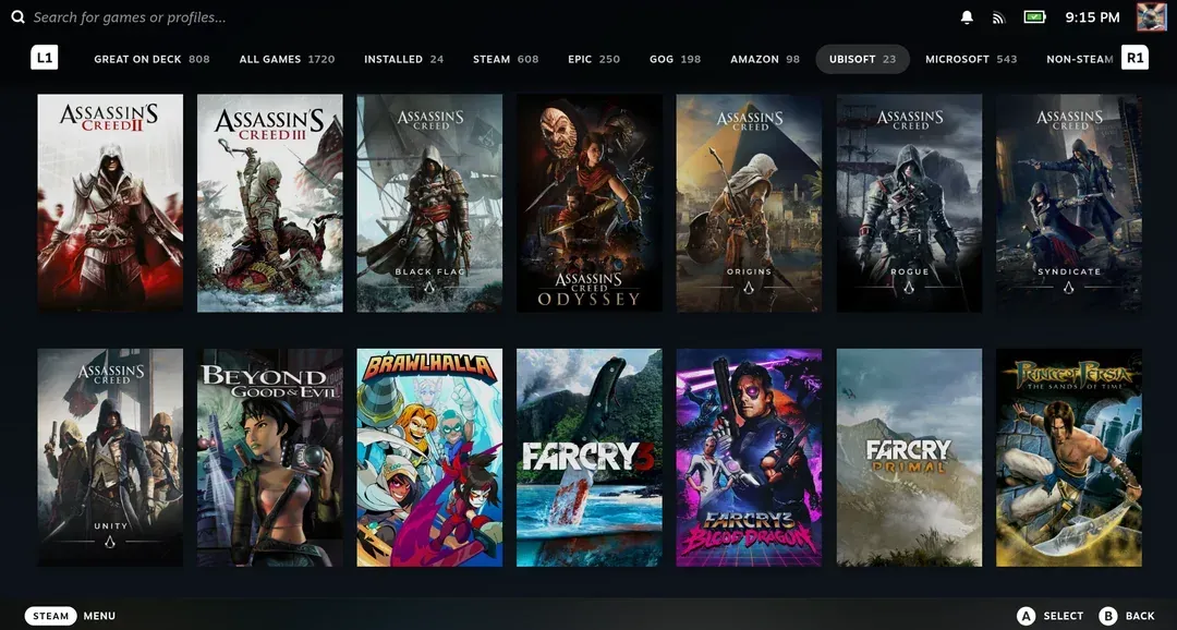 随着Ubisoft Connect与Xbox云游戏的加入,Unifideck目前已经支持五大平台来源,包括Epic Games、GOG、Amazon Games、Ubisoft Connect以及Xbox Game Pass云游戏。这种覆盖范围,使其逐渐接近“全平台内容整合入口”的形态,也让Steam Deck在第三方游戏管理上更接近主机级体验。