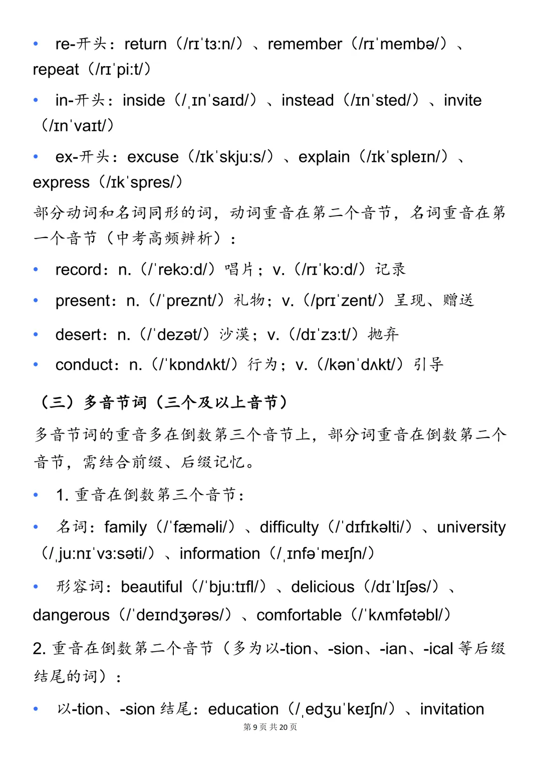 中考英语必背【专题知识点】,可打印 快收藏