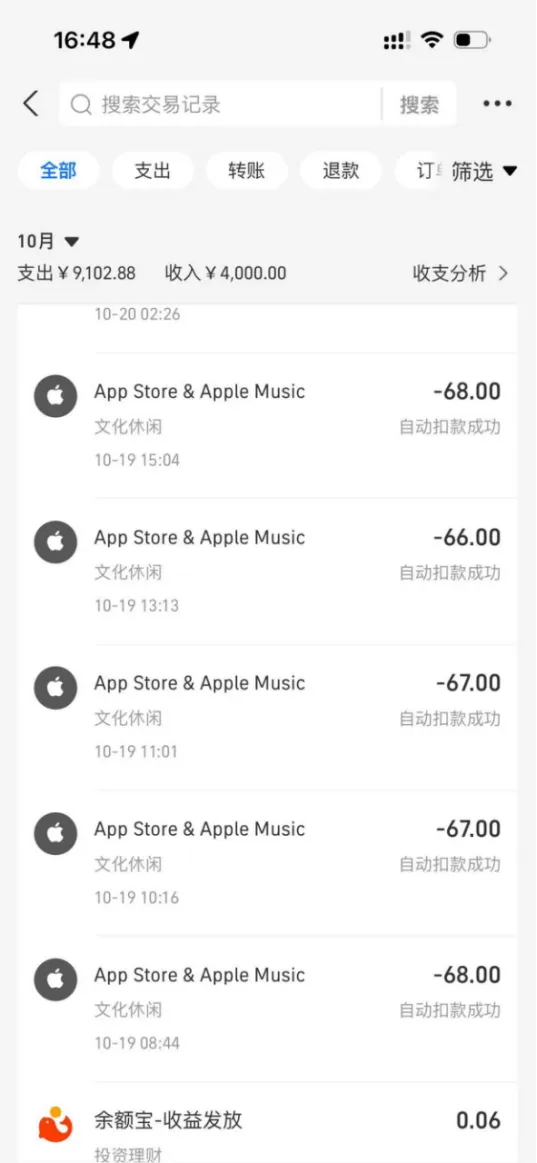 查看了一下交易记录,原来是我给我爸爸用的一个苹果账号。