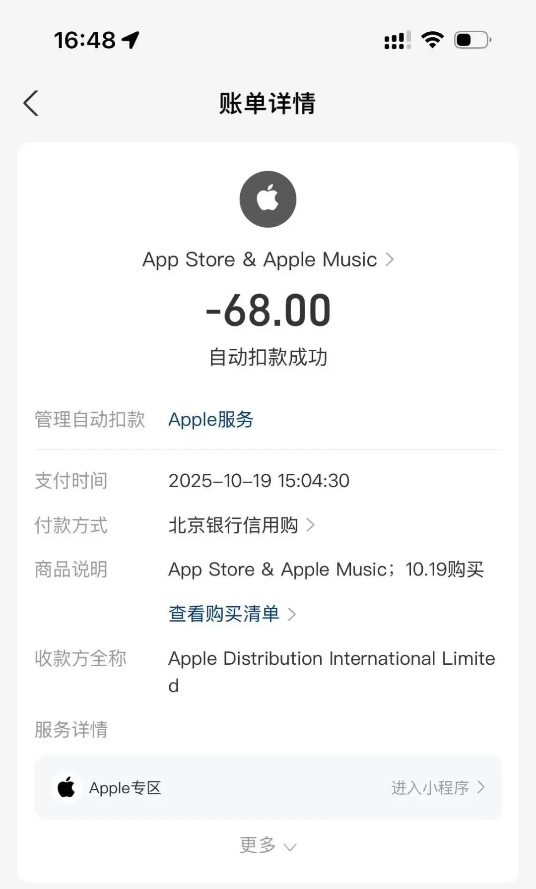 仔细一看,又确实是苹果官方扣的费,扣了一千多。