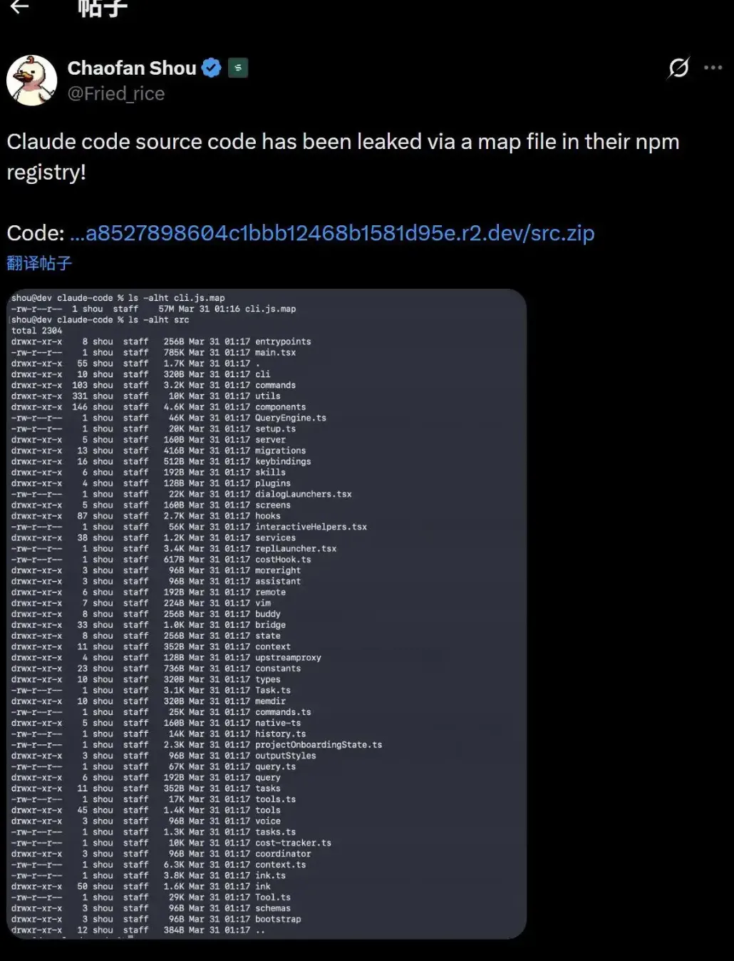 爆发:3月31日深夜的“意外裸奔”:Anthropic团队在更新Claude Code的npm包时,使用Bun打包工具编译代码,却忘记在.npmignore文件中添加Source Map过滤规则。这个名为cli.js.map的文件,包含了1906个源文件的完整代码,相当于把Claude Code的“五脏六腑”全暴露在外。