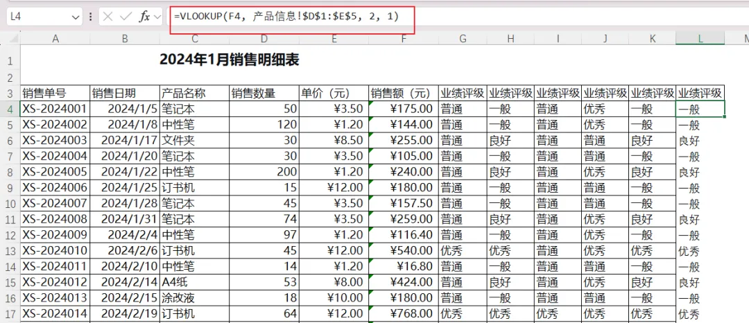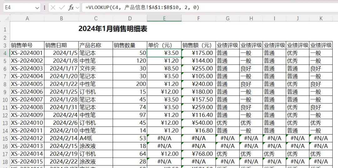 场景6:在销售表中使用VLOOKUP自动匹配单价