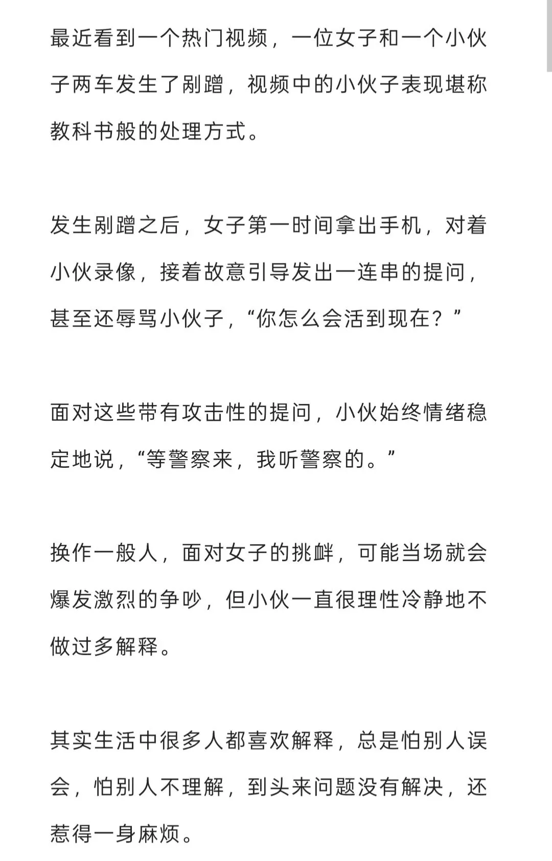 比如我之前看过一个爆款视频,两车发生剐蹭,小伙子情绪非常稳定处理事故,获得广大网友的点赞,以这个热点事件作为开头写过一篇中稿文章。