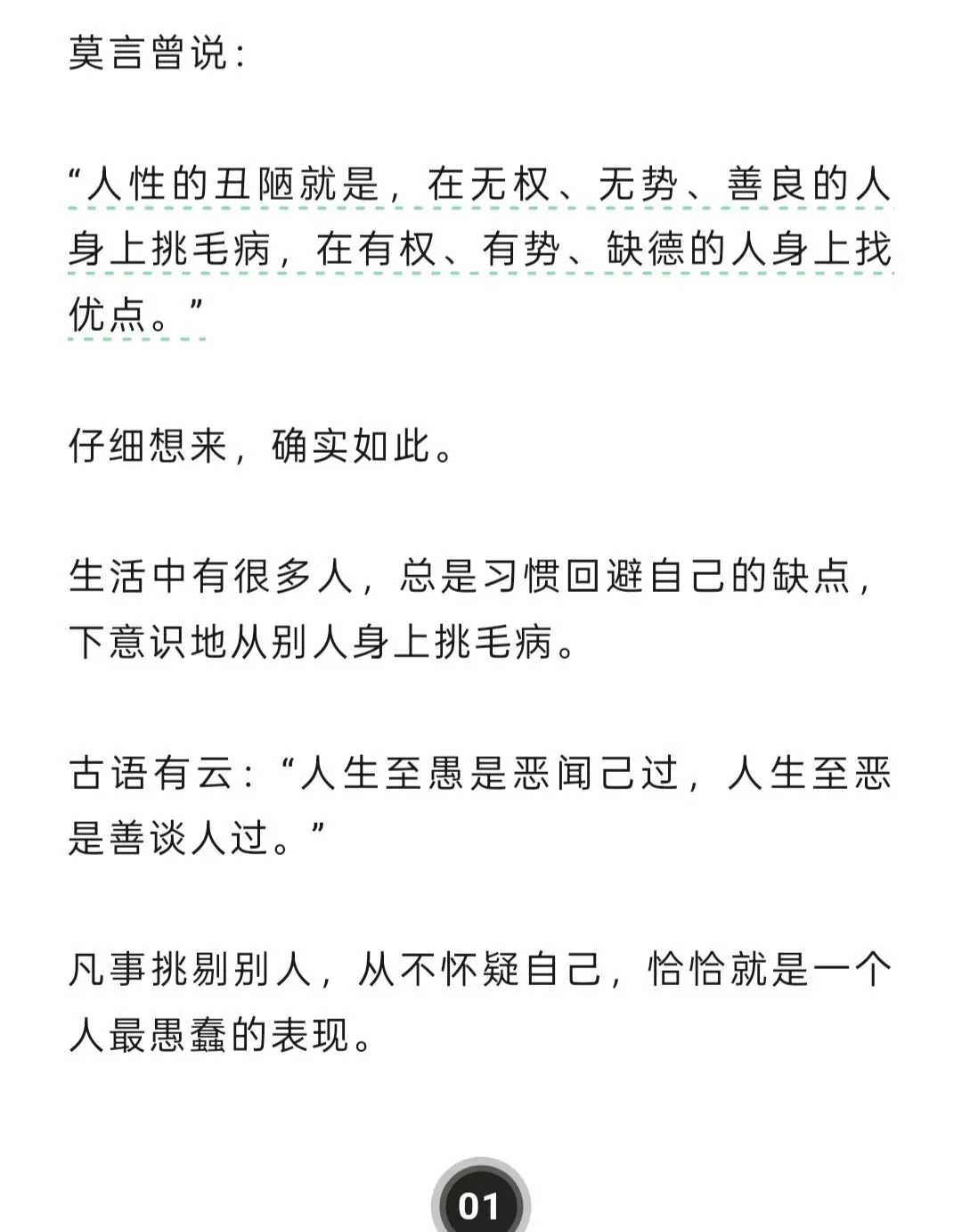 经常会看到名人名言开头,比如莫言说、杨绛说、稻盛和夫说或者是经典书籍里某段话。