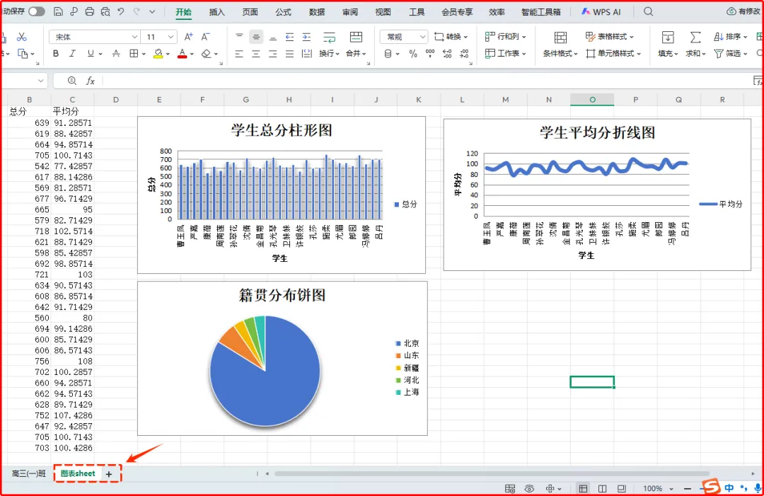读取桌面的【高三(一)班成绩统计表】文件,对高三一班的学生成绩数据,进行分析,先绘制如下图表: