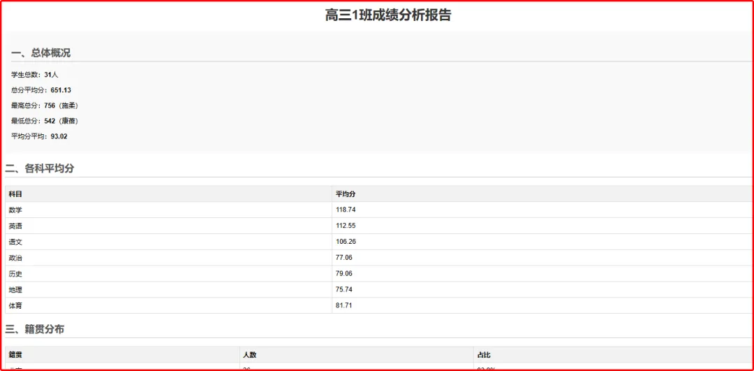 -再生成一份html格式的数据分析报告,保存到桌面,文件名为:高三1班成绩分析报告。