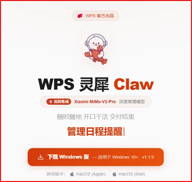 1、WPS灵犀Claw首度集成了Xiaomi Mimo大模型