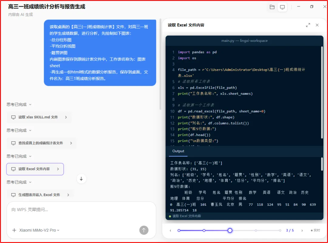 在能力上,依托python丰富的库,灵犀Claw特别适合用来进行数据分析处理,图表可视化、以及文档的自动化批量处理。