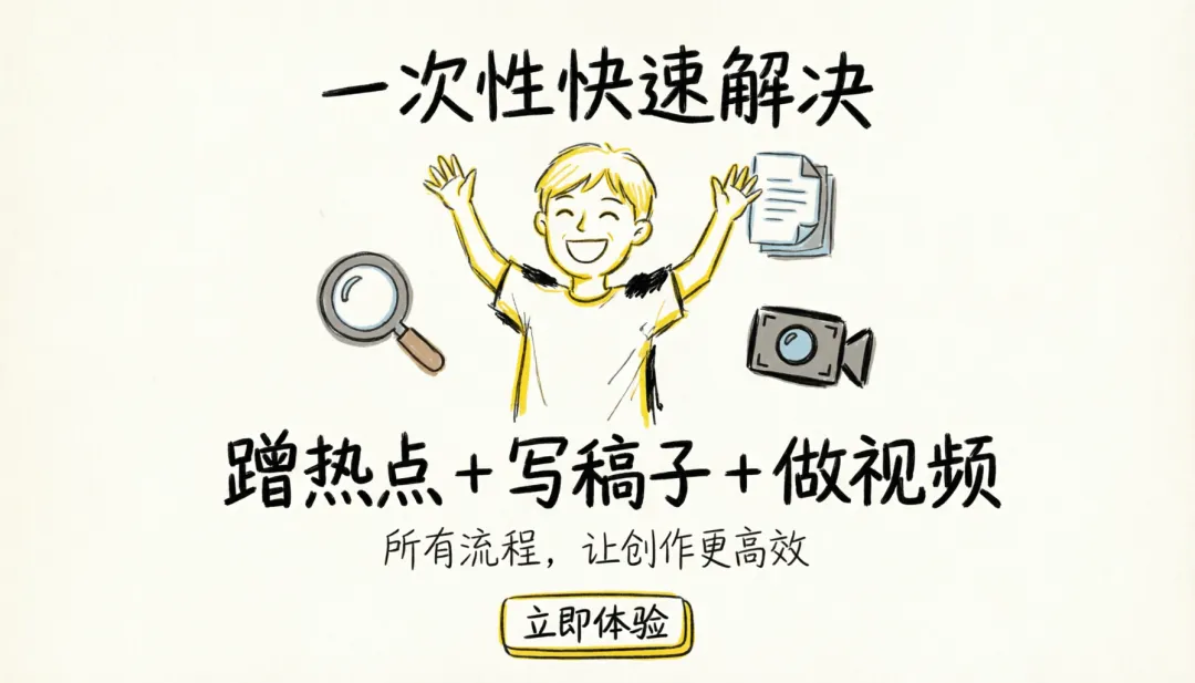 一次性解决”蹭热点 + 写稿子 + 做视频”的所有流程。