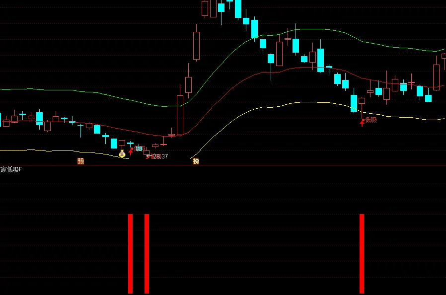 低吸:CROSS(Var1,Var2) AND Var1<30,COLORRED,NODRAW;