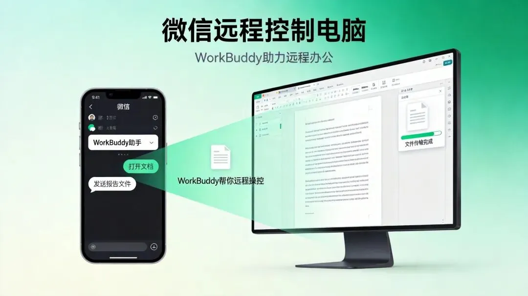 远程操作示例 外出开会时,我在手机微信发送: “把E盘项目文件夹里的Q1复盘.pptx发送到文件传输助手”