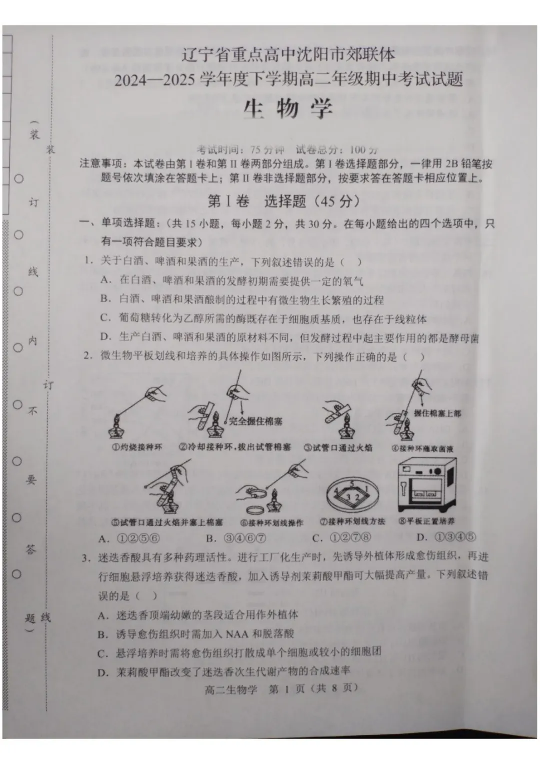 【可下载】辽宁省重点高中沈阳市郊联体2024-2025学年高二下学期期中考试 生物 PDF版含答案