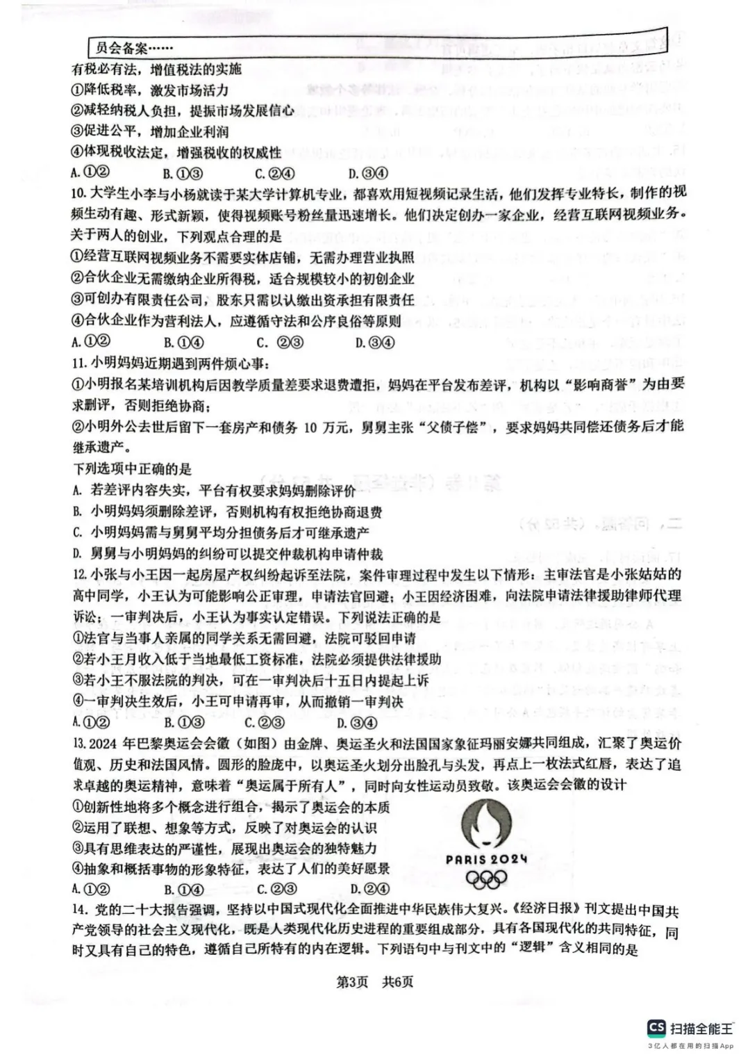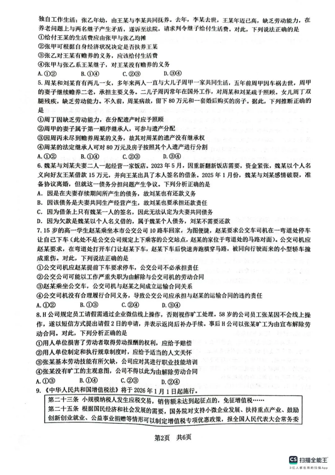 【可下载】四川省绵阳南山中学2024-2025学年高二下学期4月期中考试政治试题(pdf版含答案)