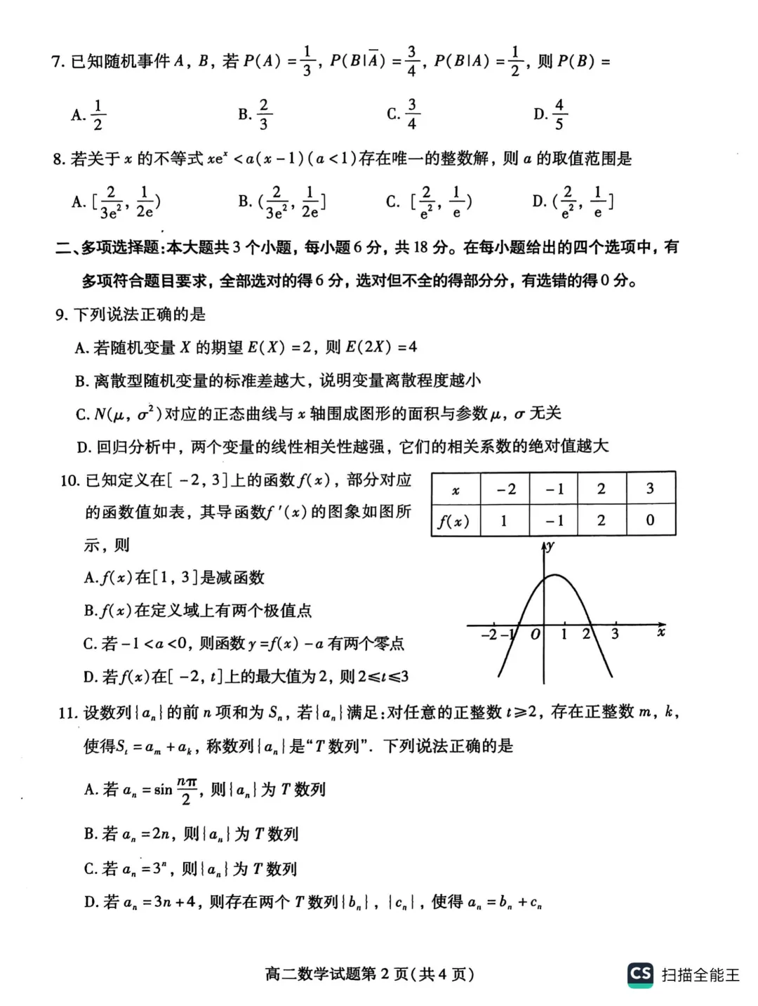 【可下载】山东省潍坊市2024-2025学年高二下学期诊断性调研监测数学试题(图片版含答案)