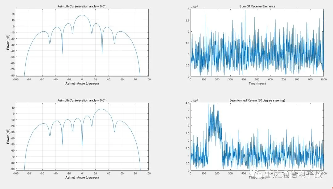 下面使用仿真的数据,来设计相控阵系统并分析其在不同场景下的性能。视频中举了2个例子: