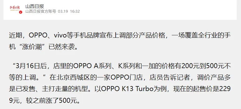更恐怖的是,因为价格整体抬升,“千元机”这个细分赛道正在快速消失,原本定价1000元到1500元,现在涨完了要1500到2000元,智能机的入门门槛都变高了,对于学生党、老年用户堪称灾难。