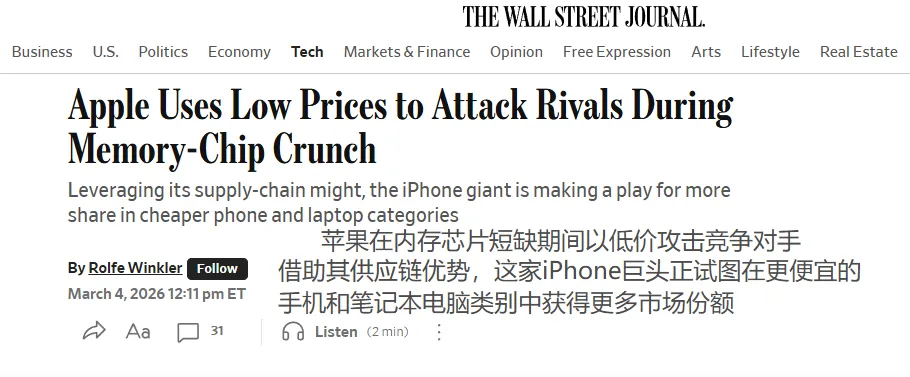 两倍价格疯抢内存!苹果正在用供应链绞杀安卓