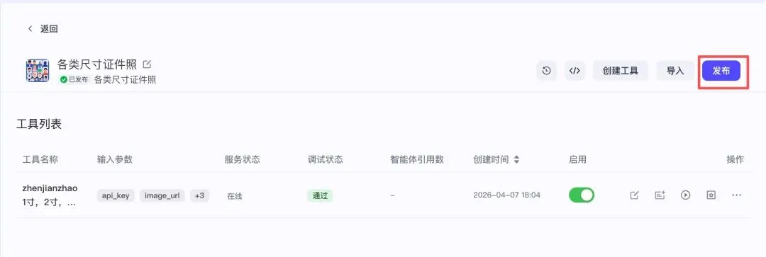 审核通过后在插件商店里就可以找到刚发布的插件,任何工作流里都能直接调用这个证件照工具。
