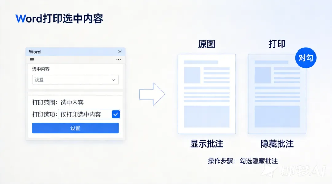 ✅ 避坑提醒:如果文档里有修订标记,也要在打印选项里取消勾选「修订标记」,不然也会一起打印出来。