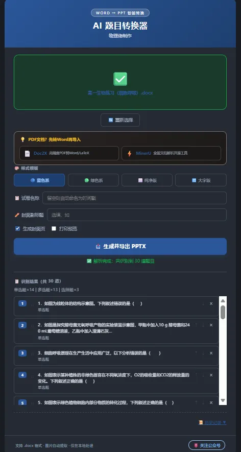 📚 告别手动排版!这款工具让Word试卷秒变精美PPT