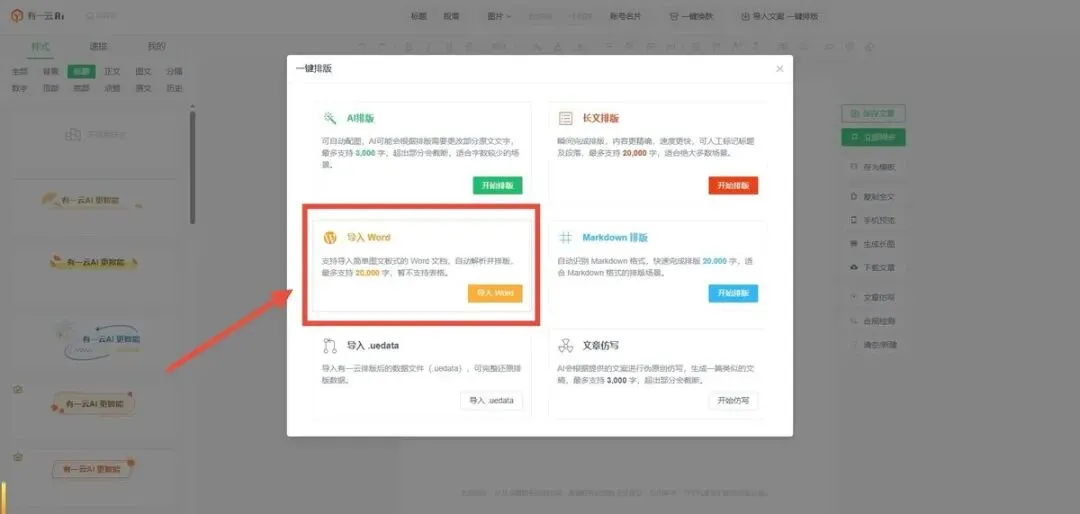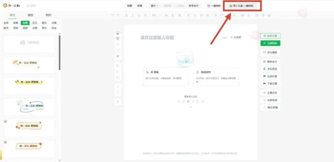 有一云AI排版,一键导入图文word,30秒完成公众号排版,超稳!