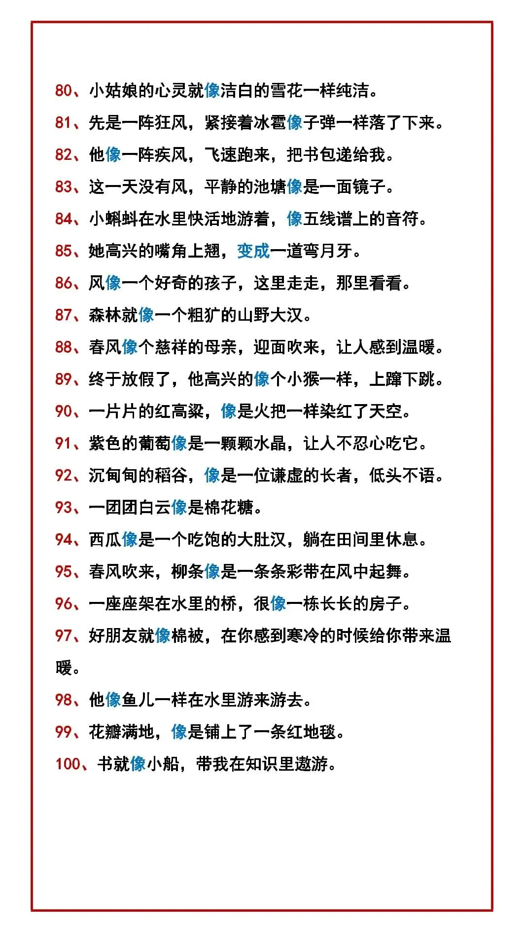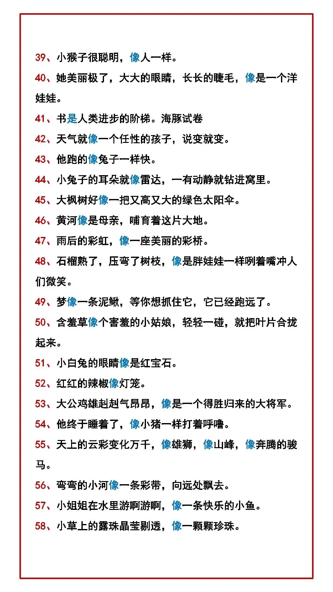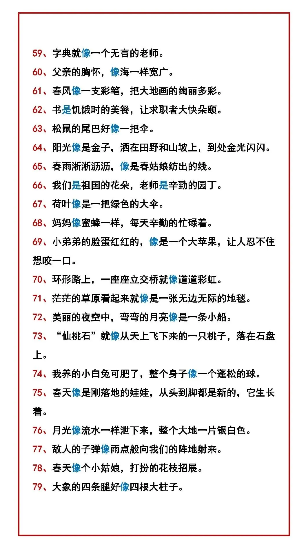 可下载丨二年级下册语文经典比喻句100句,电子版可打印